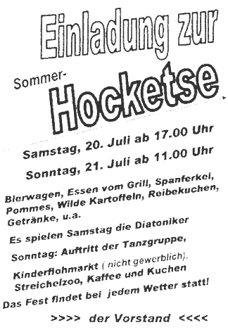Wir laden alle recht herzlich zu unserer Sommerhocketse ein! Geboten werden: