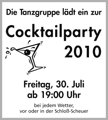 Der Aufbau beginnt am Freitag, den 30.07.2010 um 14.00 Uhr und wir brauchen wieder fleißige Hände! Es wird traditionelle Speisen vom Grill geben. Am Sonntag bieten wir neben der traditionellen Speisekarte ein komplettes Mittagessen mit Spanferkel und Kartoffelsalat an. Neben den Vorbereitungen kann jetzt auch die Vorfreude starten! Der Vorstand